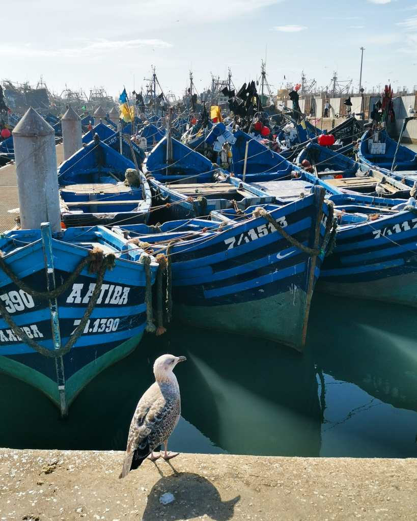 - Visit the port: You will see fishermen selling their catch of the day and hundreds of traditional small blue boats parked in the port. It is a must-see in Essaouira!